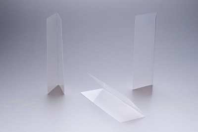 私たちの業界では絵の通り原反と呼ばれるフィルムの巻物がほとんどです。 半分に折りながら加工することを半折加工と呼んでいます。更に半分に折るダブル半折、更に半分に折るトリプル半折。 材質はフィルムがメインですが紙でも可能です。 そして、その逆加工も可能です。 半折から展開して平たい状態にする半折展開加工も承ります。 ホットメルトを駆使した粘着加工、カット品から巻き取りまであらゆる要望に対応。